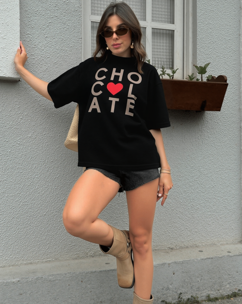 T-SHIRT OVERSIZED ESTAMPA LOCALIZADA CHOC♥LATE