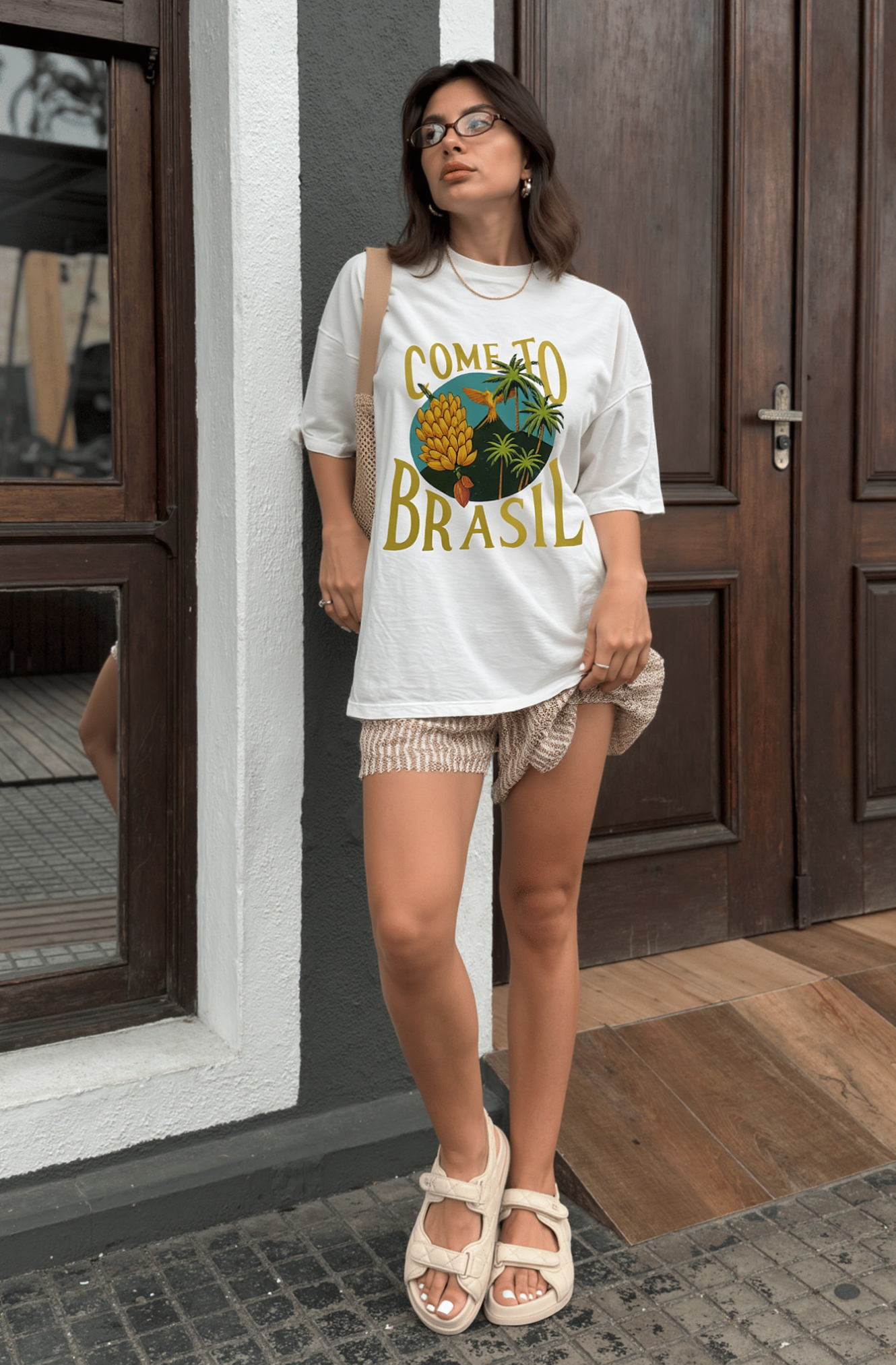 T-SHIRT OVERSIZED ESTAMPA LOCALIZADA COME TO BRASIL